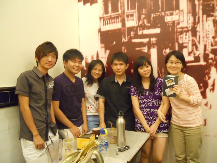 We went to occupy a table at McDonald to prepare our little surprise for Tze Xin and Yi Heng, which turned out to be successful; before they arrive. :D Cutting papers and glue-ing photos while waiting for the others' piece of letters. Might have a little imperfection in my design but overall is great piece of work. At least doesn't look anything too much like junk. Ahahah. Hooi Chuing took the responsibility to keep Tze Xin away from our mystery gift while we were working on it.